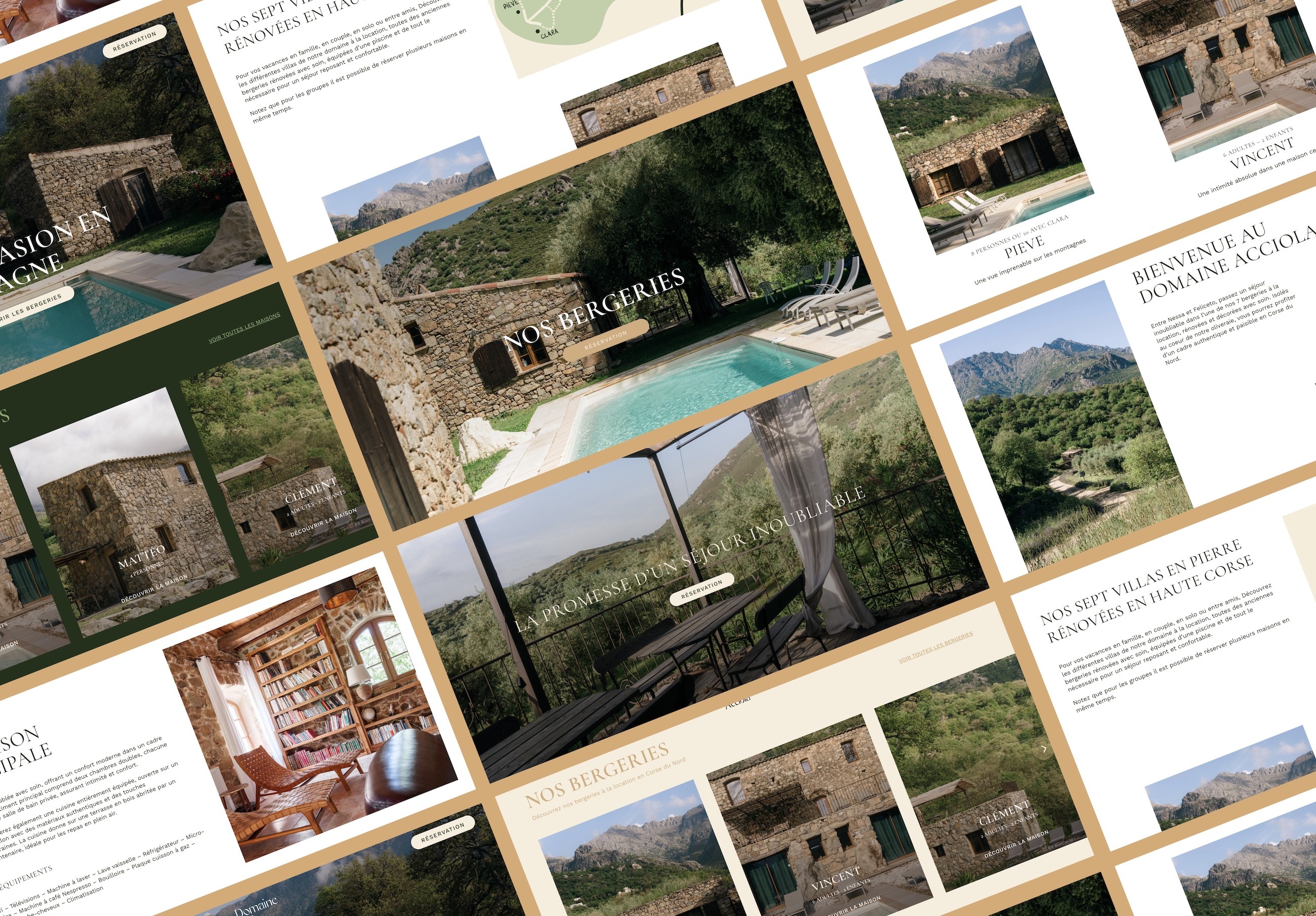 Le Domaine Acciola est un domaine oliécole dans lequel des villas sont proposées à la location touristique. Leur objectif était de créer un univers visuel pour représenter leurs activités et créer un site web pour générer des réservations en direct.