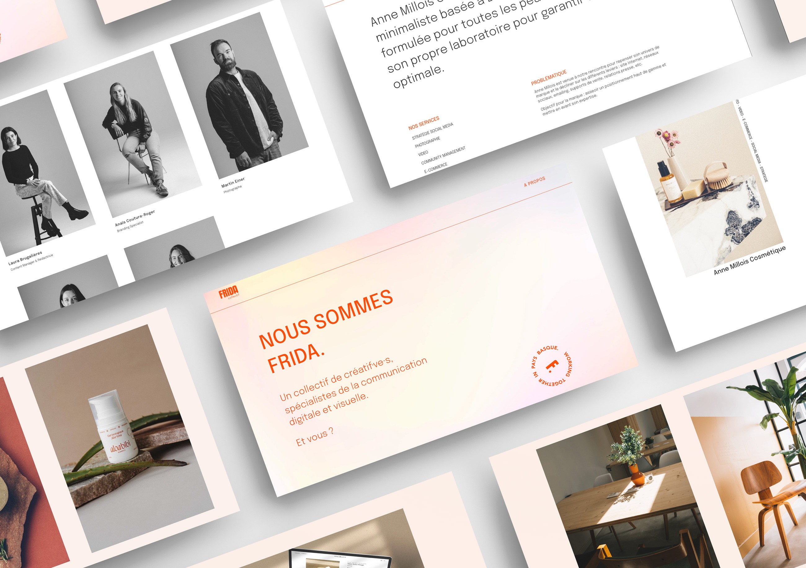 Frida est un collectif de freelances basé à Biarritz. Né de la volonté de mutualiser nos compétences et de proposer une offre complète aux entreprises en quête d’une identité forte et d’une présence digitale soignée, Frida se positionne comme un partenaire créatif et polyvalent.